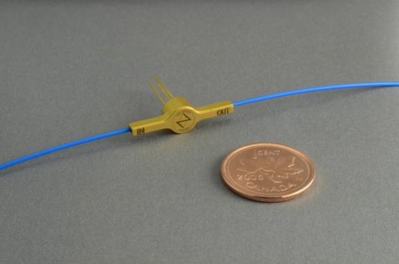 Based on patented technology using Femtosecond lasers to write waveguides directly inside optical fibers, OZ Optics optical tap monitors combine the optical tap design with a photodiode in a single package. Optical taps work at a variety of wavelengths, including visible, near IR and 2 micron wavelengths and are suitable for high power applications. Taps can be constructed in many fiber types, including specialty fibers such as polarization maintaining fibers and photonic crystal fibers. The device is Telcordia GR468 tested, making it well suited for the telecommunications industries. The manufacturing process permits full automation, thus sharply reducing manufacturing costs. For more information check this datasheet: